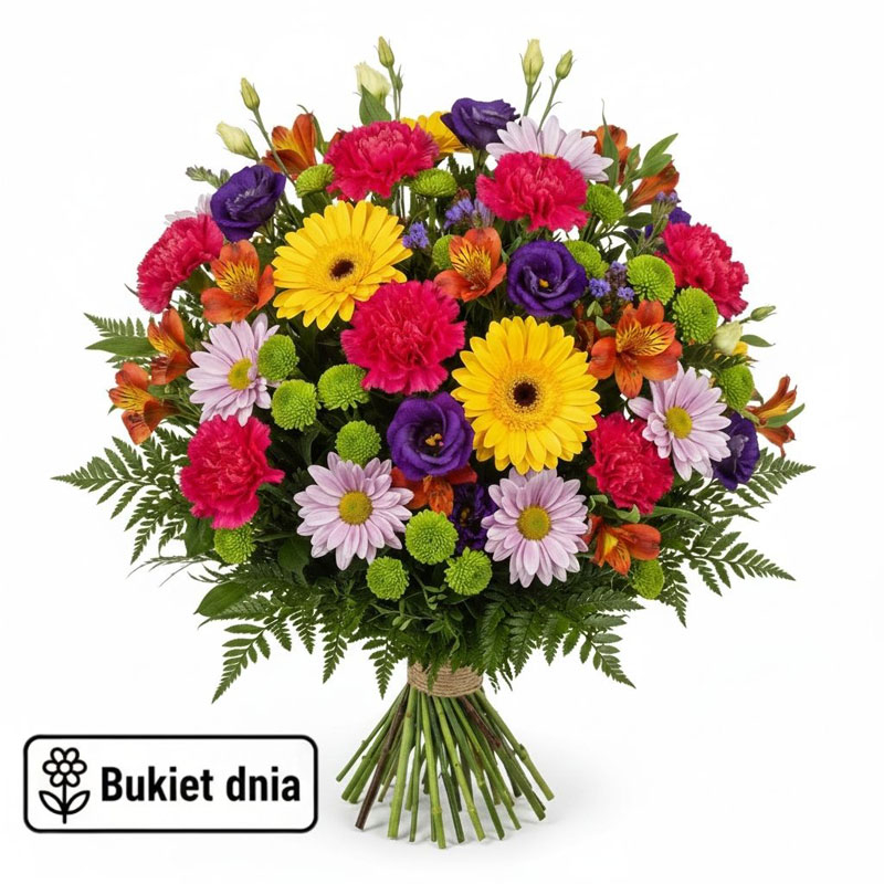 Bukiet Dnia to codziennie inna kompozycja przygotowywana przez lokalną florystkę z najświeższych kwiatów dostępnych w kwiaciarni. Każde zamówienie realizowane jest indywidualnie, a ostateczny wygląd bukietu zależy od doświadczenia i wyczucia estetyki florystki. W bukiecie wykorzystywane są zarówno kwiaty sezonowe, jak i całoroczne, dzięki czemu kompozycja zachowuje świeżość i atrakcyjny wygląd przez cały rok. Bukiet Dnia to idealny wybór na prezent, gdy chcesz sprawić radość bez konieczności wyboru konkretnego rodzaju kwiatów. Zamów bukiet z dostawą na terenie Lublina, a my zadbamy o terminowe doręczenie i wysoką jakość wykonania.