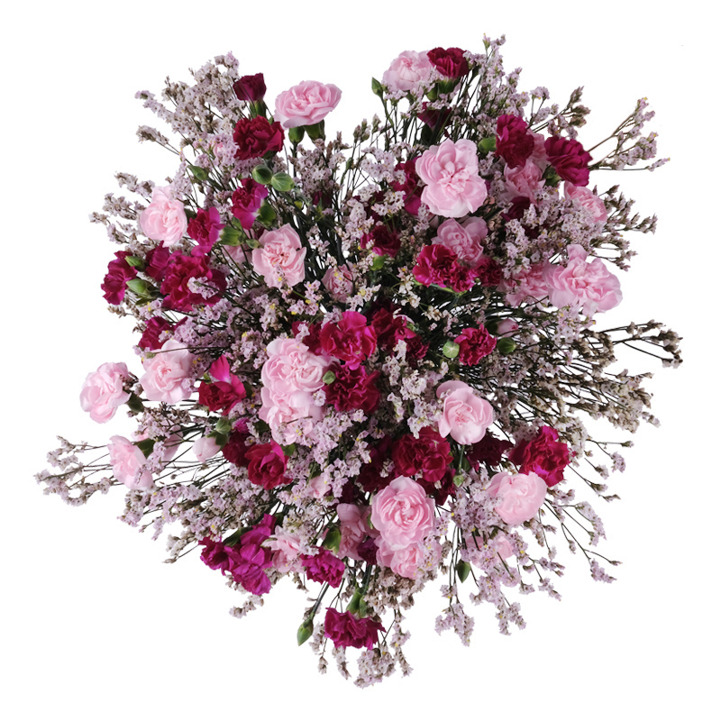 Bukiet „Z nutą goździka” to kwiatowa codzienność w najpiękniejszym wydaniu – goździki gałązkowe w naturalnym towarzystwie tego, co akurat oferuje sezon.